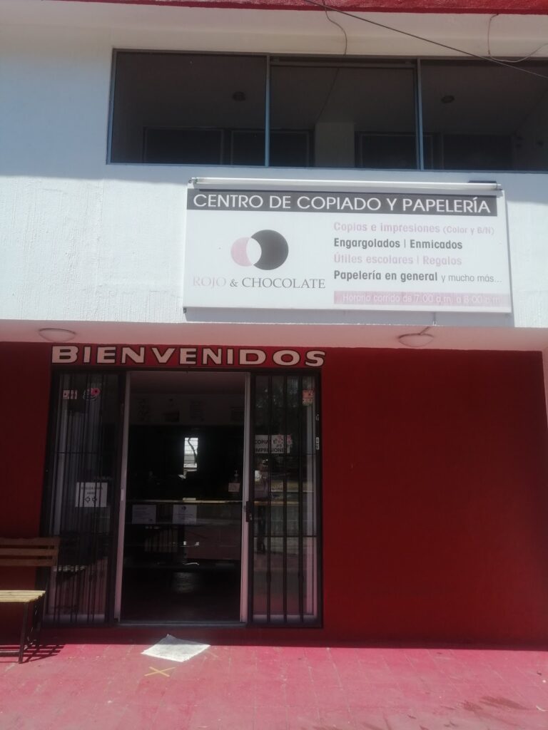 Rojo Chocolate — Papelería Ubicado en Colima. Horario: lunes: 7:00–20:00; martes: 7:00–20:00; miércoles: 7:00–20:00; jueves: 7:00–20:00; viernes: 7:00–20:00; sábado: 8:00–14:00; domingo: Cerrado | Calificación: 4.5 (111 opiniones) Sitio web: https://www.facebook.com/RojoChocolate