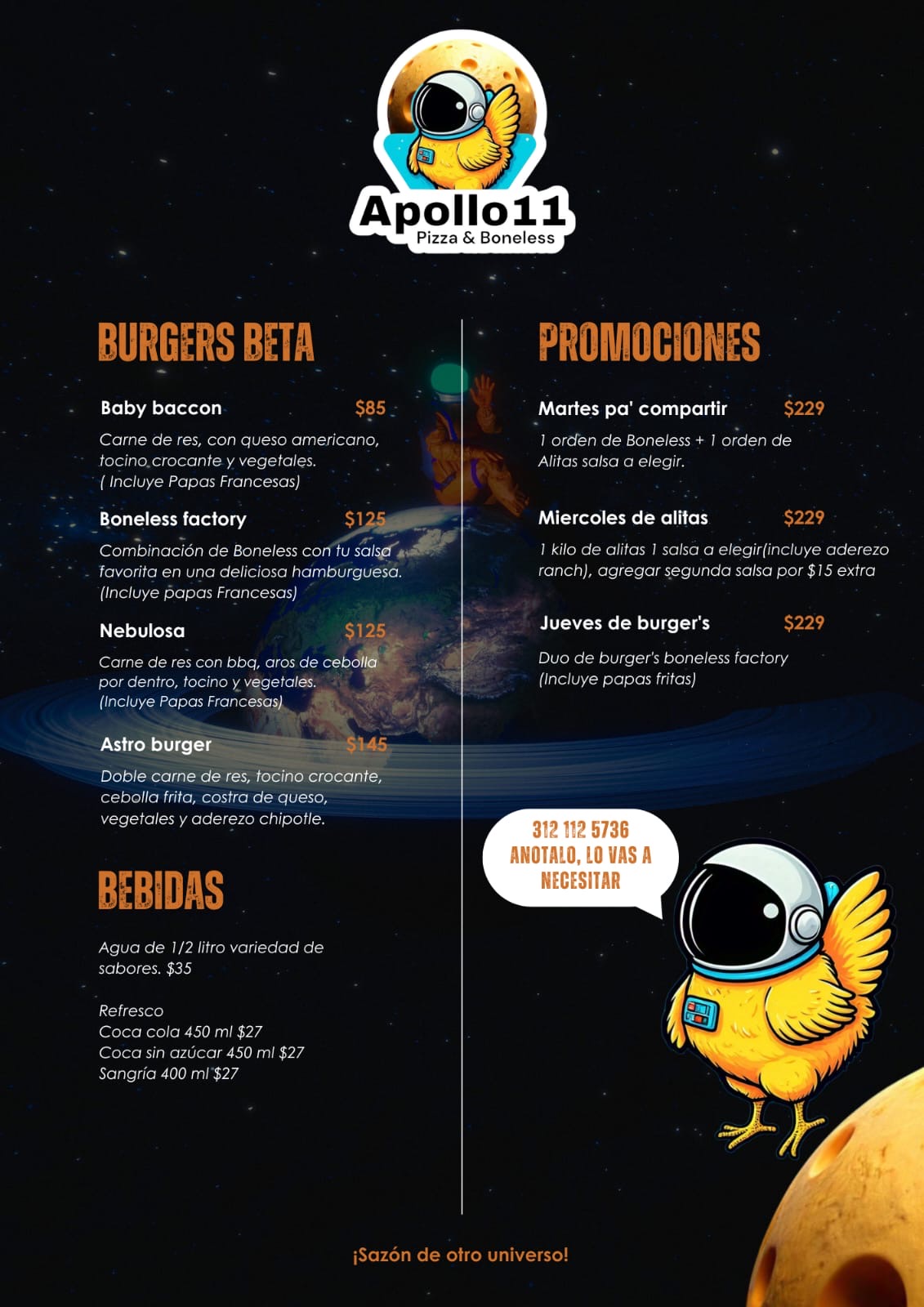 Apollo11 es un restaurante destacado ubicado en el corazón de Colima, en la Calle Gral. Silverio Núñez 543, Barrio Alto. Este establecimiento es reconocido por ofrecer una experiencia gastronómica de alta calidad, donde cada platillo refleja la pasión y dedicación de su cocina. Con una calificación perfecta de 5 estrellas basada en opiniones reales de clientes, Apollo11 se ha consolidado como un punto de interés imprescindible para quienes buscan sabores auténticos y un ambiente acogedor. Los visitantes destacan la excelencia en el sabor y la presentación de los alimentos, así como el excelente servicio al cliente. Si estás en Colima y deseas disfrutar de una comida memorable, Apollo11 es una opción 100% recomendada. Para más información, reservas o consultas, puedes comunicarte al teléfono 312 112 5736 o visitar su perfil en https://directoriocolima.com.