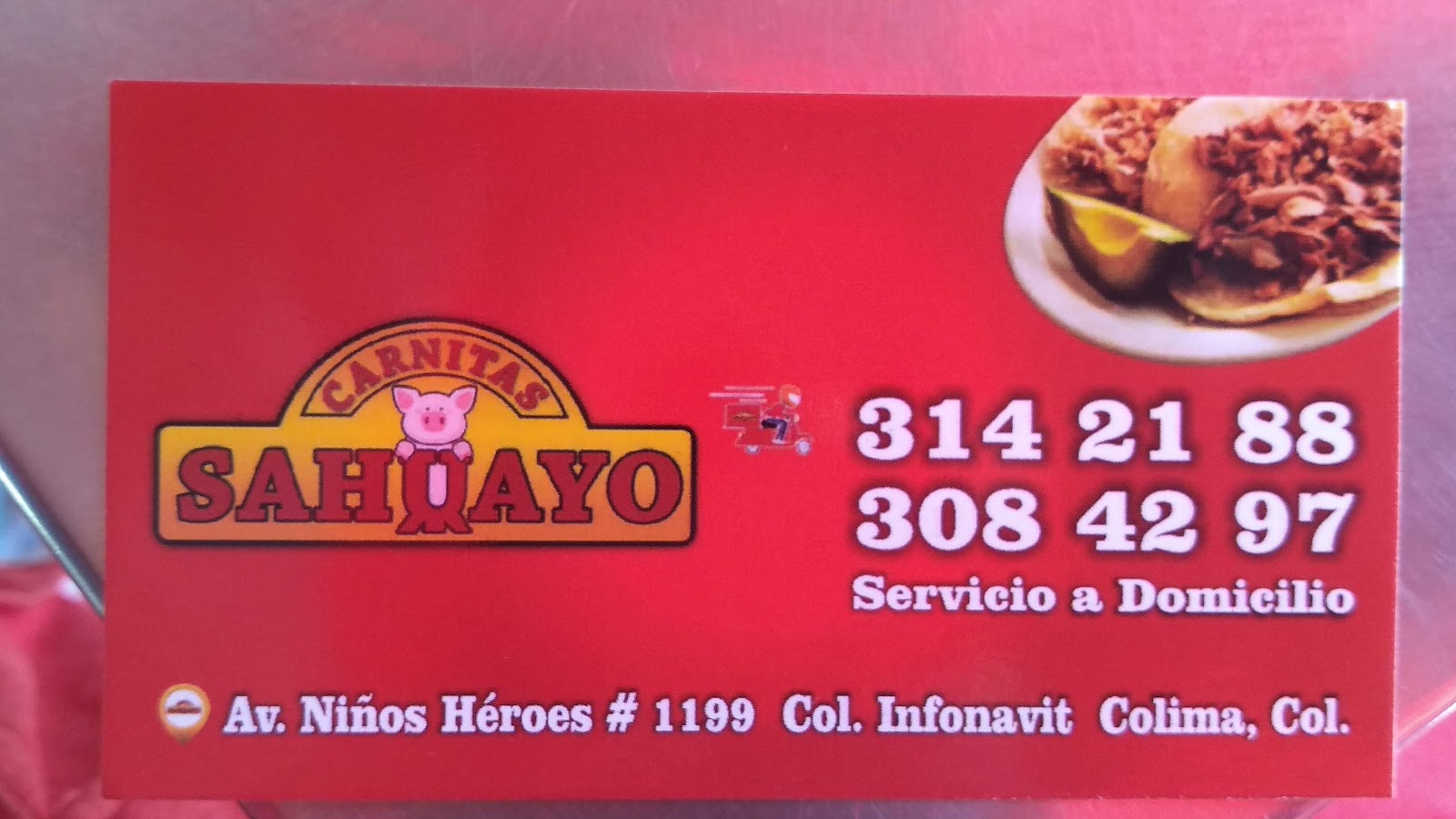 Carnitas Sahuayo es un restaurante emblemático ubicado en Av. Niños Héroes 1199, Unidad INFONAVIT, en Colima, Colima. Reconocido por ofrecer auténticas carnitas tradicionales, este establecimiento se ha ganado una excelente reputación entre locales y visitantes por su sabor inigualable y calidad constante. Con una valoración de 4.3 sobre 5 basada en 223 opiniones, Carnitas Sahuayo destaca como uno de los mejores puntos de interés gastronómicos de la región. Su menú se especializa en tacos de carnitas, preparados con técnicas tradicionales que garantizan un sabor delicioso y una textura perfecta. Además de la calidad de su comida, el restaurante ofrece un ambiente agradable y un servicio atento que contribuye a una experiencia culinaria satisfactoria. Ya sea para una comida rápida o una reunión familiar, Carnitas Sahuayo es el lugar ideal para disfrutar de la auténtica cocina mexicana en Colima. Para más información, reservas o consultas, puede comunicarse al teléfono 312 314 2188 o visitar su sitio web en https://directoriocolima.com. Carnitas Sahuayo es una parada obligatoria para quienes buscan comida tradicional y de calidad en la ciudad.