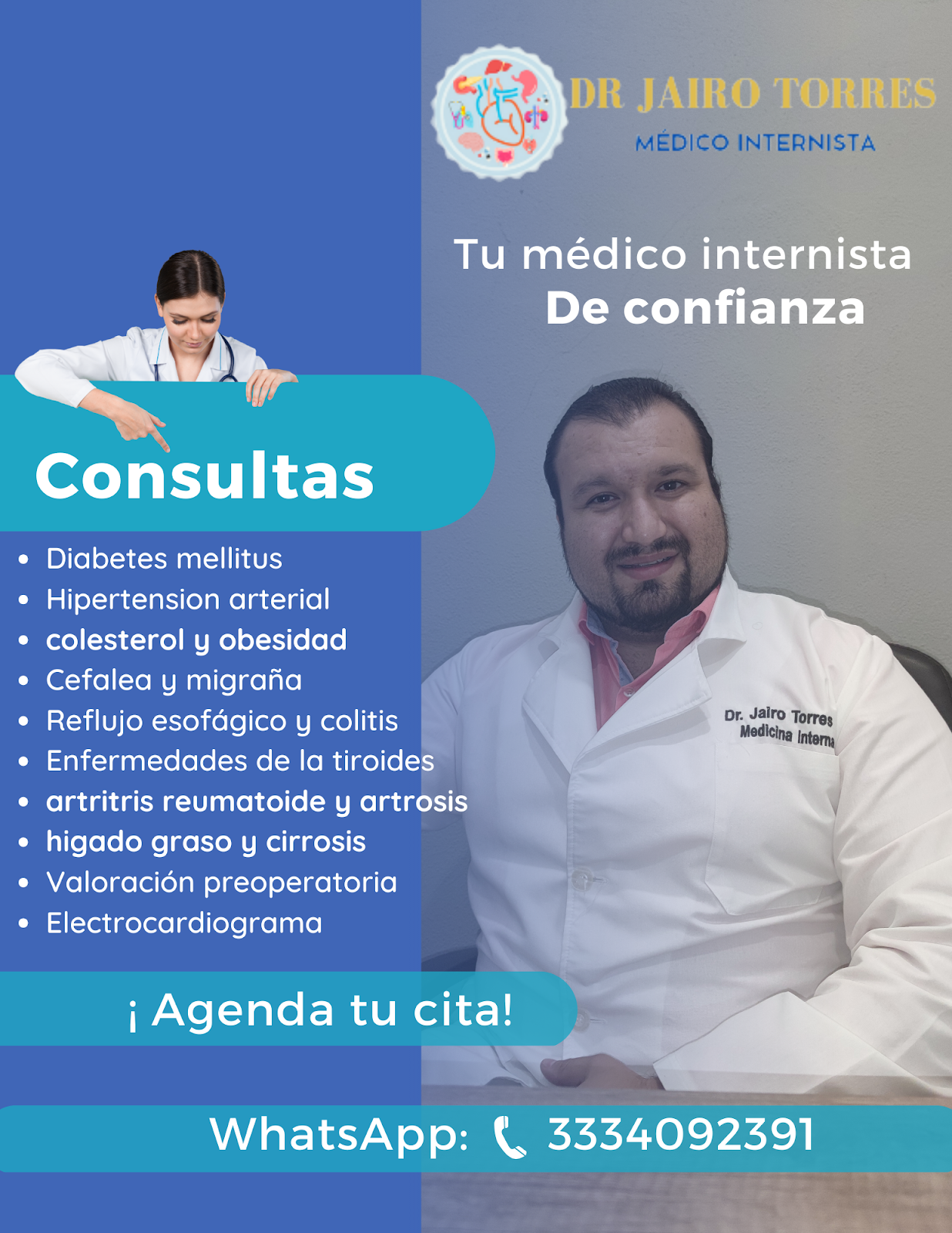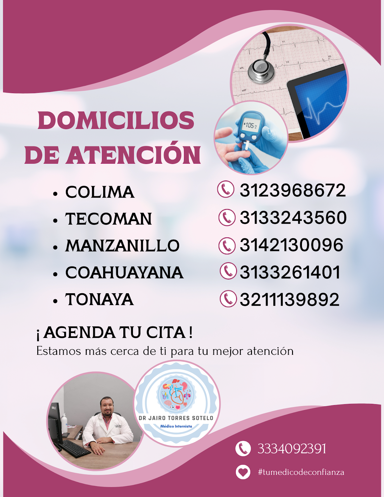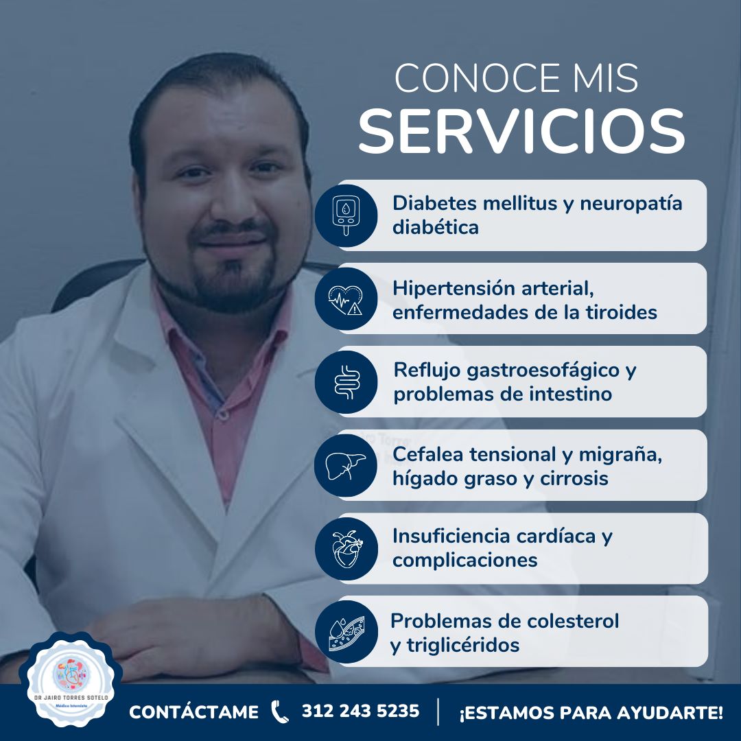 El Dr. Jairo Torres Sotelo es un internista reconocido en Colima, especializado en el diagnóstico y tratamiento integral de enfermedades internas. Ubicado en Ignacio Sandoval 1801 local 5, Centro Oncológico, en el corazón de Colima, ofrece atención médica personalizada y profesional para pacientes que requieren seguimiento continuo y manejo de condiciones crónicas. Su consultorio está equipado para brindar un servicio de calidad, enfocándose en el bienestar general y la prevención de enfermedades. Con un enfoque en la salud integral, el Dr. Torres Sotelo atiende diversas patologías internas, orientando a sus pacientes hacia un estilo de vida saludable. Para consultas, puede comunicarse al teléfono 33 3409 2391 o visitar su perfil en el directorio local en línea en https://directoriocolima.com. Su compromiso es proporcionar un cuidado médico confiable y actualizado, contribuyendo a la mejora de la calidad de vida de sus pacientes en la región de Colima.