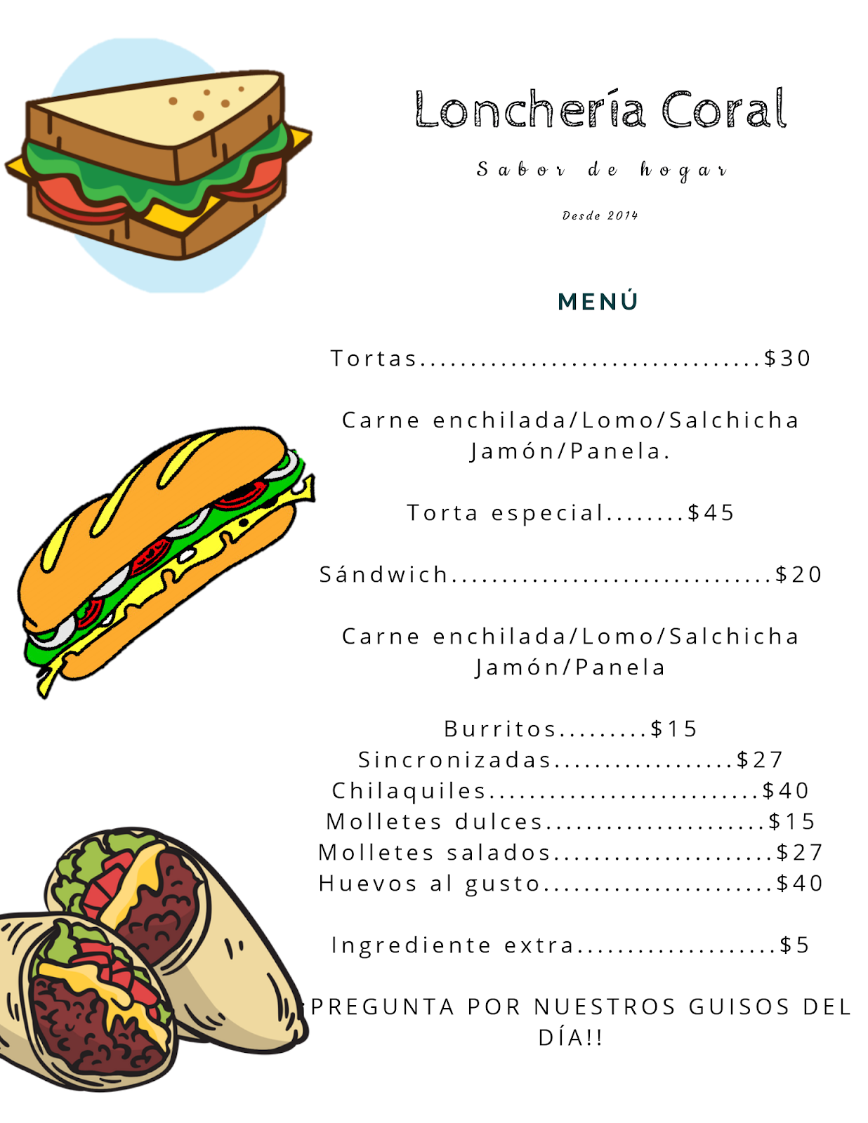 Lonchería Coral, ubicada en Miguel Hidalgo 15, Santiago Centro, Manzanillo, es un referente gastronómico en la región, reconocido por su excelente servicio y ambiente acogedor. Con una calificación perfecta de 5 estrellas basada en siete reseñas, este restaurante se destaca por ofrecer platillos deliciosos que satisfacen los paladares más exigentes. Los clientes valoran la atención personalizada y la calidad constante en cada visita, lo que convierte a Lonchería Coral en un punto de interés para quienes buscan una experiencia culinaria auténtica en Manzanillo. Su ubicación estratégica facilita el acceso a residentes y turistas que desean disfrutar de una comida casera en un entorno cómodo y agradable. Para más información o reservas, puede contactarse al teléfono 314 125 3832 o visitar su página web en directoriocolima.com.