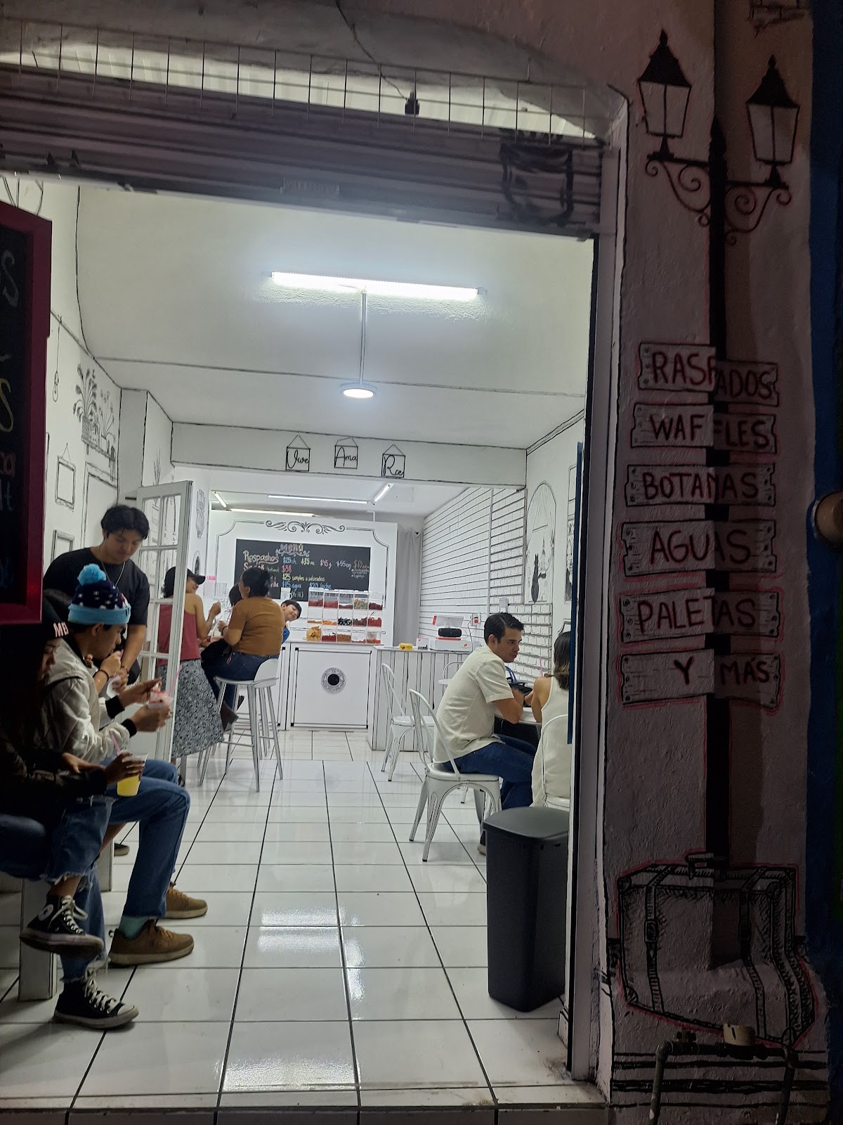 Los Raspashos es un establecimiento destacado en Colima, ubicado en Av. Constitución 1455-A, Jardines Vista Hermosa IV. Con una calificación de 4.7 sobre 5 basada en 24 opiniones, este lugar es reconocido por su oferta de raspados y otras delicias tradicionales mexicanas como tejuino, gelato y esquites. Los clientes valoran especialmente la calidad y el tamaño generoso de sus raspados, además de la variedad de sabores que ofrecen. El ambiente del local es acogedor y cuenta con una decoración que muchos describen como única y atractiva, aunque algunos han sugerido mejoras en la iluminación y el ambiente musical para hacerlo más ameno. Los Raspashos también ofrece productos como tostielotes, aunque algunas opiniones indican que la calidad de ciertos ingredientes podría mejorarse. El establecimiento se esfuerza por brindar un buen servicio al cliente, aunque se han reportado dificultades en la comunicación a través de redes sociales. En general, Los Raspashos es un punto de interés para quienes buscan disfrutar de postres tradicionales en un entorno agradable en Colima.