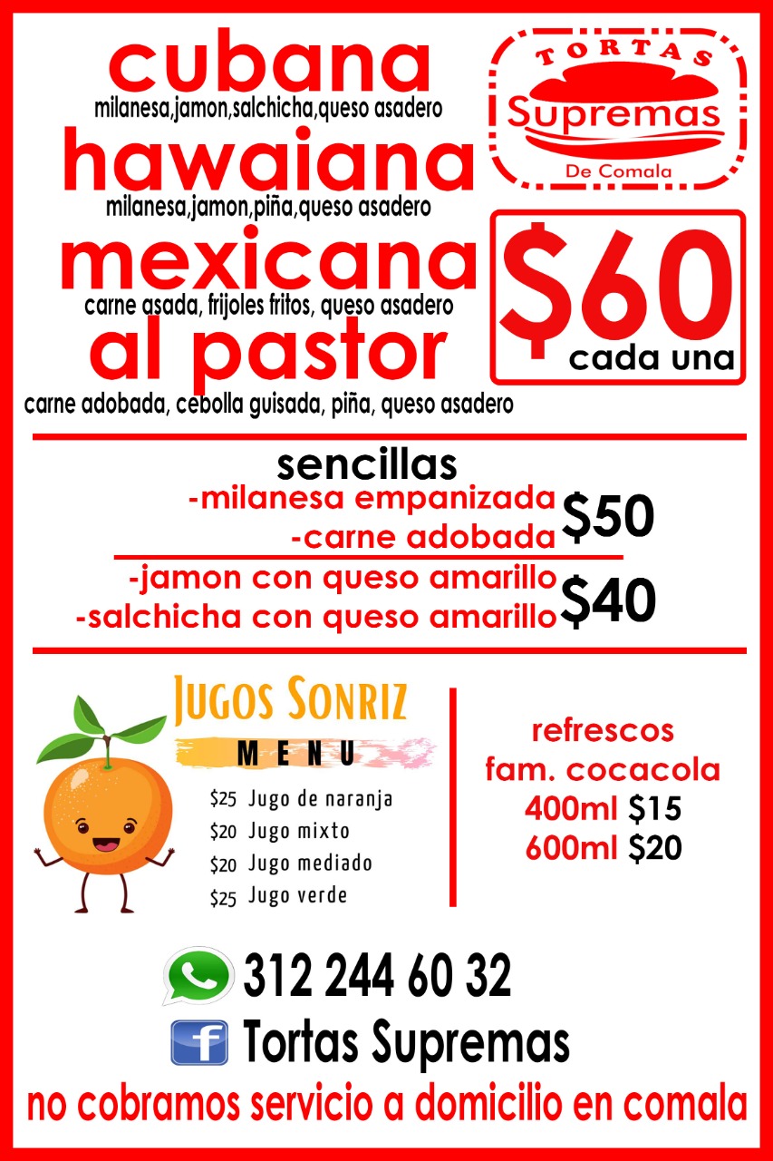 Tortas Supremas De Comala is a well-regarded restaurant located at C. Benito Juárez 201, Alto, in the charming city of Comala, Colima. With a Google rating of 4.5 out of 5 from 11 reviews, this establishment is favored by both locals and visitors for its outstanding quality and flavor. Specializing in unique and delicious tortas, it offers a culinary experience that goes beyond the traditional, perfect for those seeking something different and authentic. The area surrounding the restaurant is known for its tamarind and coffee cultivation, providing a calm and fresh atmosphere to enjoy a relaxing meal. Customers praise the freshness and taste of the products, as well as the friendly and professional service. For more information or reservations, you can call 312 244 6032 or visit the website https://directoriocolima.com. Tortas Supremas De Comala is a must-visit for food lovers in Comala looking to enjoy local flavors with a special touch.